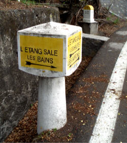 Michelin a également équipé avec ses appareils certains départements français d’outre-mer, comme l’Ile de la Réunion où l’on trouve encore quelques bornes d’angle. Les plaques de direction ne sont pas en lave émaillée mais en ciment gravé... |