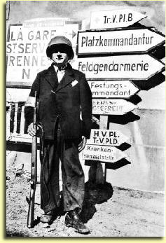 Note du Webmaster : On aperçoit au dessus du casque du premier soldat à gauche un poteau Michelin. On ne le voit pas sur cette reproduction, mais il indique les directions de OUISTREHAM et RIVA BELLA. |